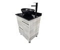 Este vanitorio destaca por su diseño moderno y funcional, ideal para optimizar el espacio en baños de cualquier tamaño. Fabricado en melamina de 15 mm.