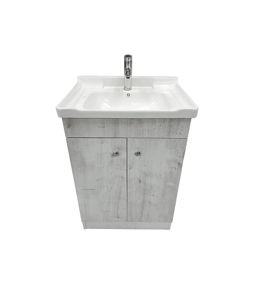 Este vanitorio de melamina en color gris jaspeado ofrece una solución elegante y funcional para baños pequeños o de visitas. Su diseño compacto y materiales de alta calidad garantizan durabilidad y un toque sofisticado para cualquier espacio.